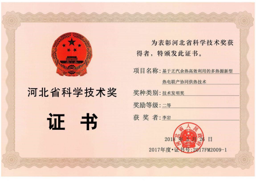 图1 河北省技术发明二等奖 |
