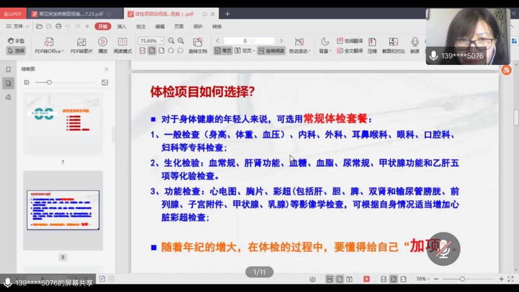 讲座伊始,刘主任结合年龄因素、性别因素、生活方式、职业因素、既往病史和家族病史详细介绍了如何科学选择体检项目,指导大家科学合理管理身体,根据个体差异,选择适合的体检项目,确保体检项目针对性强、检查方案有效。