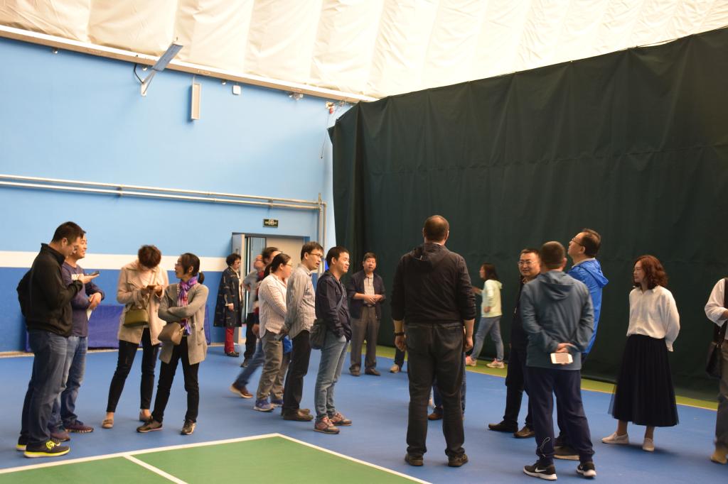 在工作人员的陪同下,专业教师参观了冰球馆和综合馆。主体场馆采用气肋式充气膜结构,自重轻,跨度大,抗震性能好。奥体中心项目部技术人员对项目建造和使用情况进行了详细的介绍,随后,与会人员就场馆的围护结构、新风系统、温湿度控制、采光等技术问题进行了深入的交流。项目部负责人表示,球馆可做为亚博体育