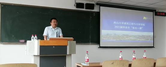 一支粉笔,两袖清风,三尺讲台,四季耕耘……自建筑环境与能源应用工程专业成立以来,张永贵老师就深受建环专业学生的敬仰与爱戴。在“最后一堂课”上,张老师将本专业三大基础课之一的“工程热力学”知识融入到生活中,循序渐进,教育引导学生要明确自己的信念和目标,让自己头脑清醒,是非曲直分明。临行之际,张老师引用《礼记·大学》里面的“修身齐家治国平天下”,教育引导毕业生要不断完善自己,规范行为,将自己所学的专业知识,回馈给社会,更好的肩负起青年学生的历史使命和时代责任。