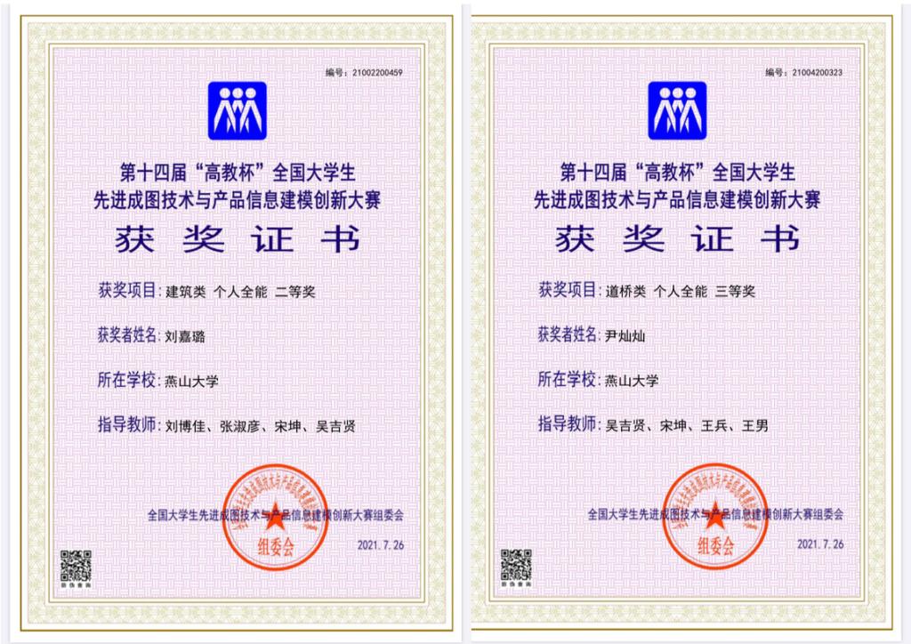 高度重视此次大赛,统一部署、整体规划,落实好经费保障、团队组建、赛事组织等关键环节。专业指导教师在注重日常训练的同时,进行了为期一个月的暑期专项集训。最终,参赛学生在本次大赛取得优异成绩,荣获个人全能建筑类二等奖1项,三等奖3项,个人全能道桥类三等奖1项。