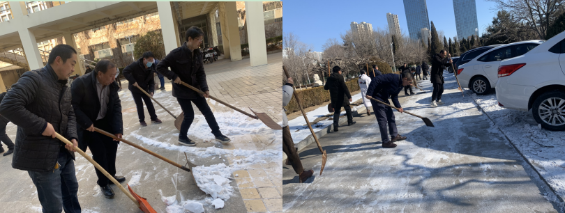 会前,与会人员集中力量清扫建筑馆门前及周边的积雪,确保路面清洁,保障教职工出行安全,展现了建工人团结协作、同心同力、积极向上的精神风貌。