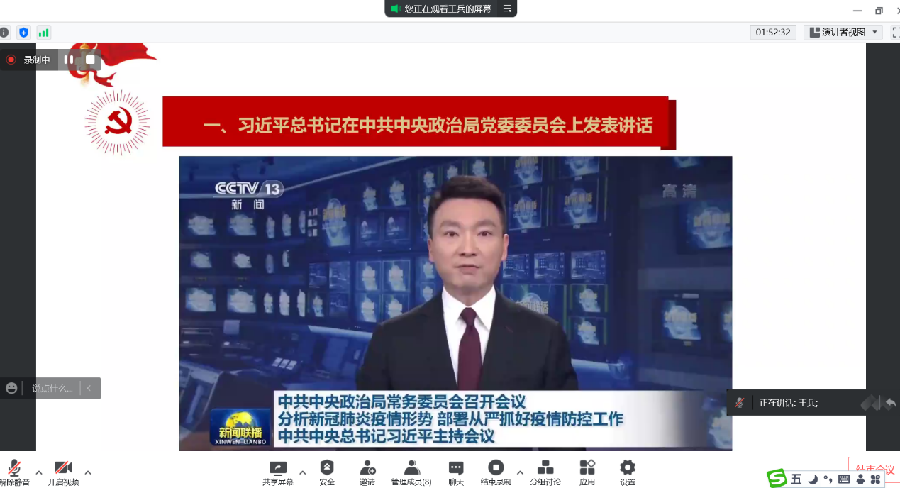 党委以腾讯会议形式线上召开春季学期第一次党委中心组学习会,专题学习习近平总书记3月17日在中共中央政治局常务委员会上关于疫情防控的重要讲话精神。亚博体育