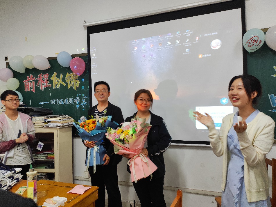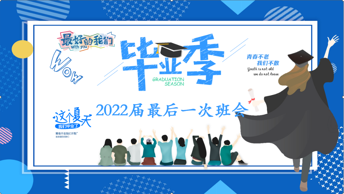 2022届毕业生辅导员燕博、曾凡宇老师为毕业生同学们精心准备了“最后一次班会”。班会上, 燕博老师通过“时光机”的方式,以照片和视频为载体,带同学们回顾了自2018年9月入学以来大学生活的点点滴滴,在座的同学们看到当年青涩的样子数度哽咽。同时,燕博老师从“思维”“视野”“畏惧”“社会”“生命” 五个维度引导同学们对自己的大学生活进行反思,对未来读研工作进行规划,对未来人生旅途选择开展思考,并祝愿同学们永远追寻内心,永远热爱生活,永远一路向前。