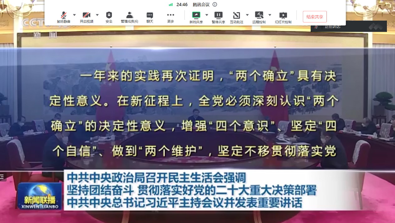 与会人员共同学习了习近平总书记在中共中央政治局民主生活会上发表的重要讲话精神,并围绕《亚博体育