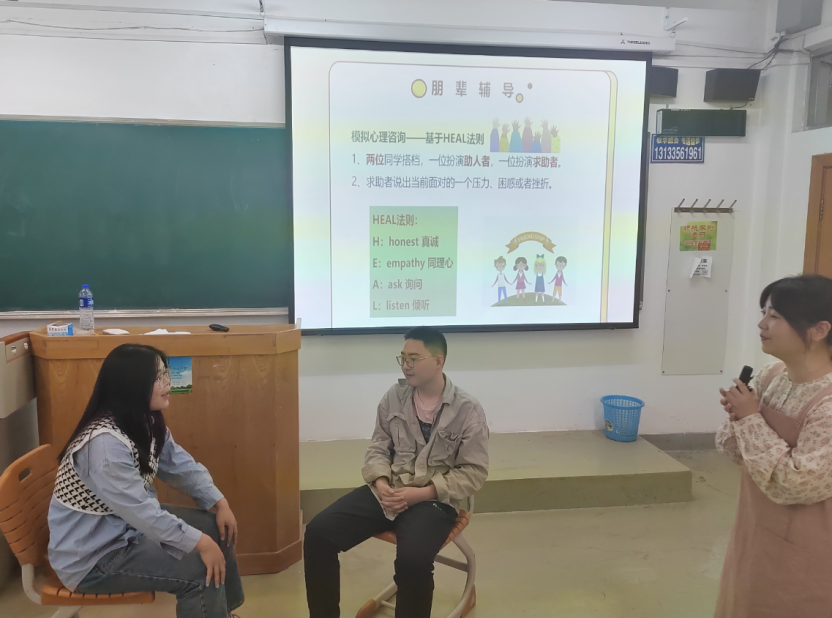 李亚蕾老师通过生动详细的讲解,引导同学们如何主动发现心理异常情况、如何排解负面情绪。活动中还采取互动的形式,邀请现场同学进行知识问答和情景体验,气氛轻松热烈。