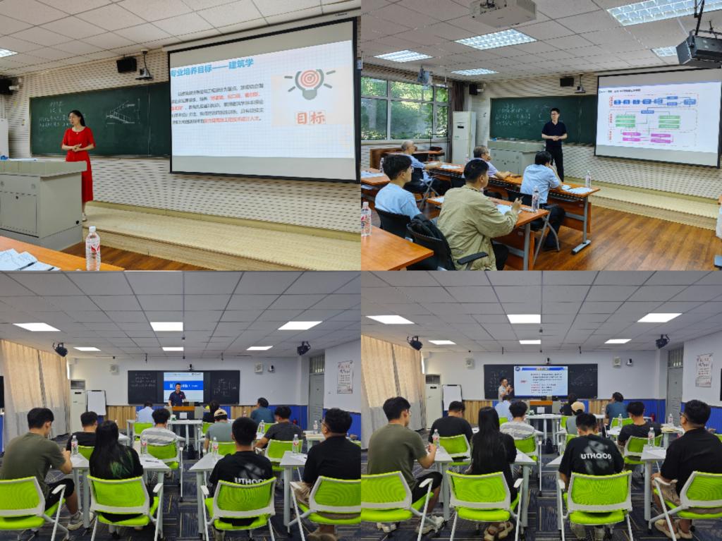 提供的古诗词中随机抽取一首在黑板上书写。该环节既考核了青年教师的专业绘图能力,也考查了青年教师的板书书写功底,还提升了他们的人文素养。在教学设计汇报环节,参加考核的教师需用PPT对本人主讲课程的教学设计思路和内容进行汇报,该环节重在考查青年教师对课程的把握情况和教学设计思路。在现场课程教学展示环节,参加考核的教师需从教学日历中选取5次课做为考核备选内容,考核开始前从中随机抽取1次课进行授课展示。教师参加该环节的考核,需要对课程教学进行大量充分的准备,对教师的教学基本功是一次扎实的历练。两组教师考核完毕后,评委逐一进行了详细的点评,并给出了中肯的建议。经过一上午的比拼,最终4位教师被考核为优秀,其余教师均通过考核。