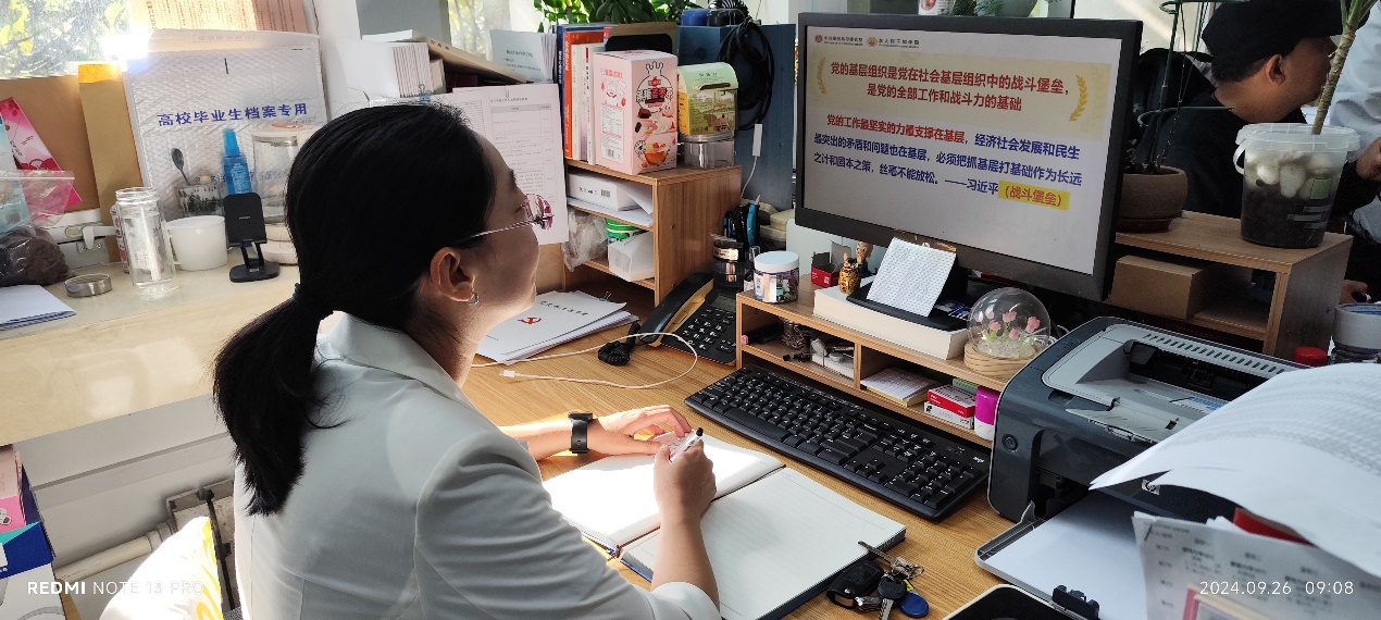 师生党员通过集中研学和个人自学两种方式,收看空中课堂——“初心讲堂”线上直播,学习了中共秦皇岛市委党校基础理论教研部主任安建峰讲授的《如何提升党员责任意识,增强党支部活力》课程。