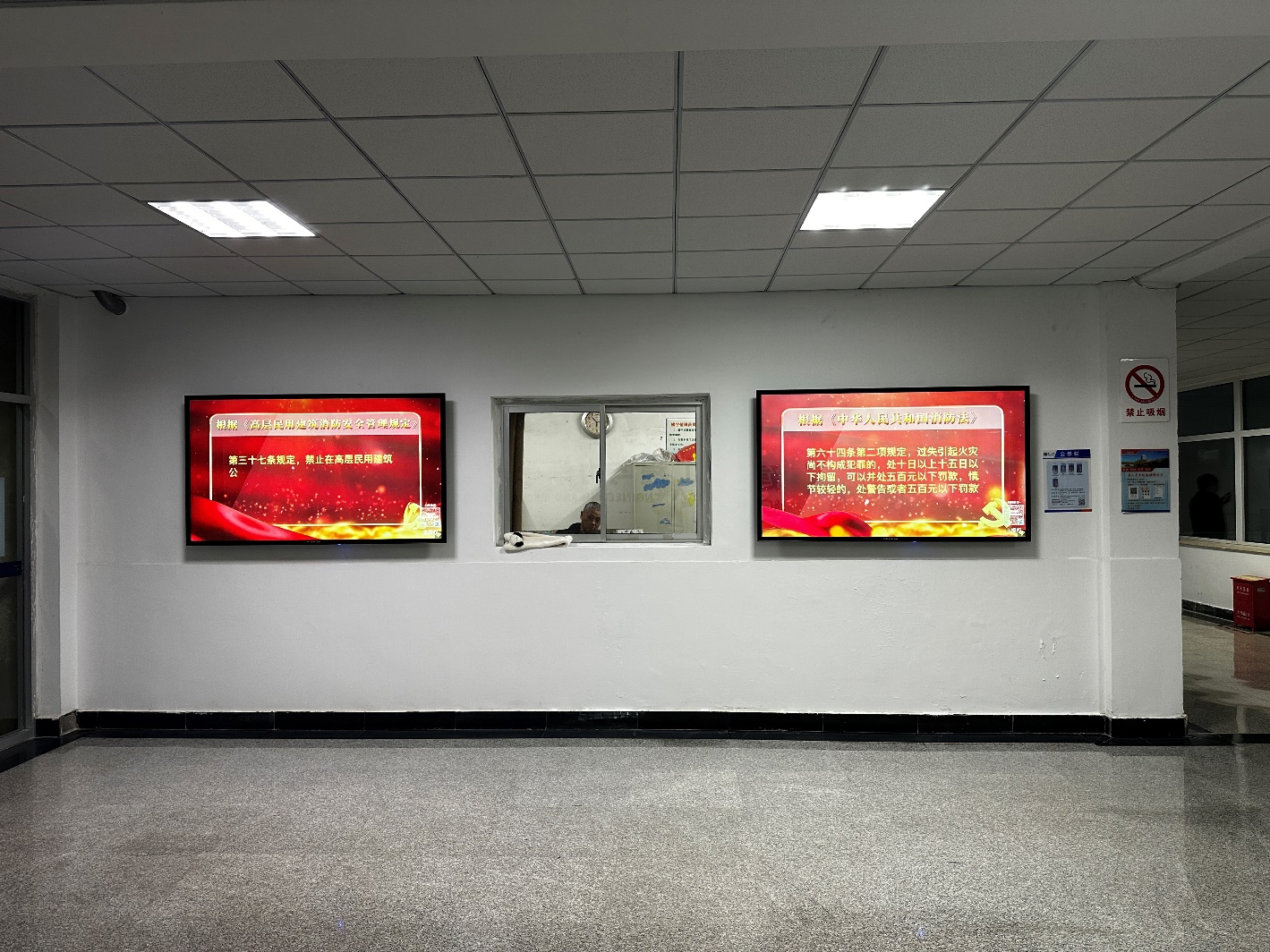 建筑馆LED屏幕循环播放消防标语、公益广告、宣传短片