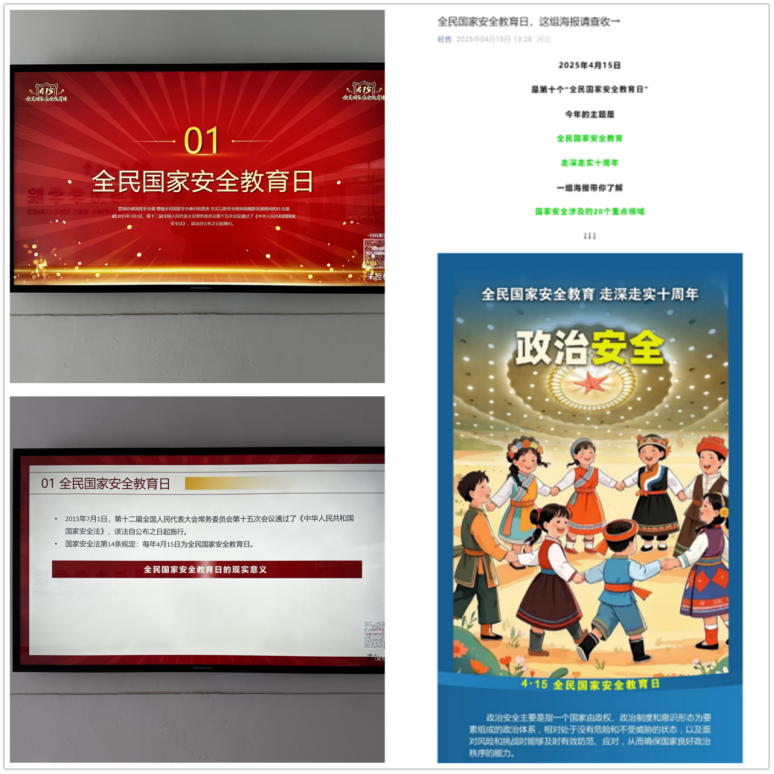 《关于组织开展2025年全民国家安全教育日活动的通知》要求,于4月10-4月16日组织开展了系列丰富多样的国家安全教育活动。