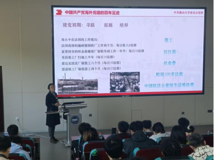 多位教师为参训学员讲授党课。杨新宾老师在培训中围绕三个历史决议与中国共产党总结历史经验的基本方法展开。深入阐述了不同历史时期,中国共产党总结历史经验的时代背景、主要内容和重大意义;包巍老师通过珍贵史料与生动案例,讲述了周恩来、邓小平等革命先辈在欧洲勤工俭学期间成立旅欧共产主义小组的故事;剖析了《赤光》《少年》等海外刊物如何成为传播革命火种的重要阵地;强调了海外建党的百年足迹不仅是党走向世界的历史见证,更彰显了中国共产党自诞生之日起就具有的国际视野与使命担当。