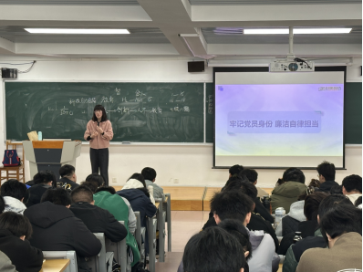 学生第一党支部书记张娟娟以“牢记党员身份,廉洁自律担当”为题,为全体团学骨干、入党积极分子讲授了一堂生动的廉洁文化教育专题党课。