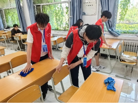 13时30分,首批同学在相应工作人员的专业指导下有序上岗。校车协管组运用标准化流程,完成3辆校园通勤车的深度清洁;教学楼卫生维护组采用网格化管理模式,对12间教室桌椅、200米围栏进行精细清洁,并按照规范整理教学设施。食堂帮厨组在用餐高峰期协助分装餐食100余份,并完成餐具消毒流程体验。同步开展的消防设施检查中,同学们运用专业设备检测32具灭火器,学习应急设备管理规范。