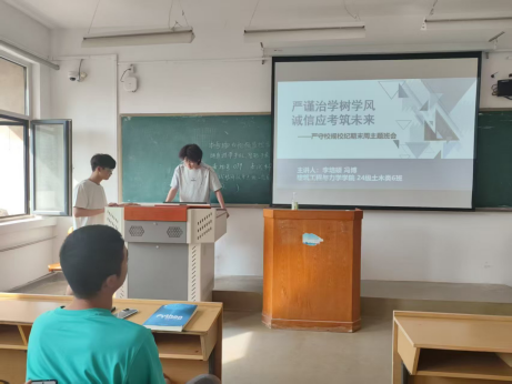 于6月22日开展了“筑牢诚信基石,弘扬优良学风”主题班会活动。本次活动覆盖2024级本科生14个班级,360余名学生积极参与,旨在引导学生树立正确考试观念,坚守诚信底线,共同维护优良考风学风。