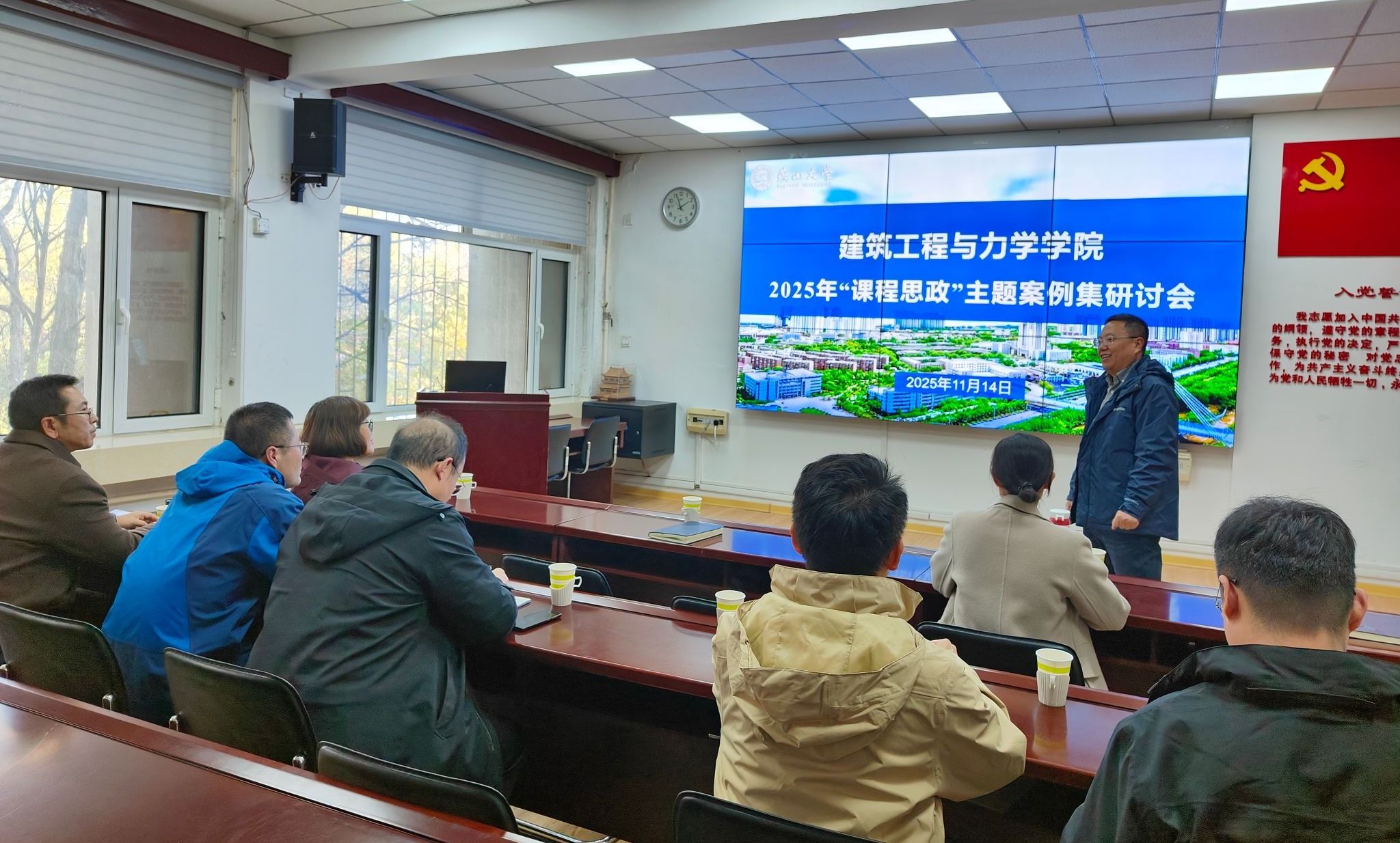 研讨会围绕主题案例集的编撰展开,聚焦于如何将思政元素有机融入专业课程教学,实现知识传授、能力培养与价值引领的深度融合。会议特别邀请马克思主义杨新宾团队教师金玉秋,依托其深厚的理论素养与思政教学专长,为各专业主题案例把脉问诊、精准指导。