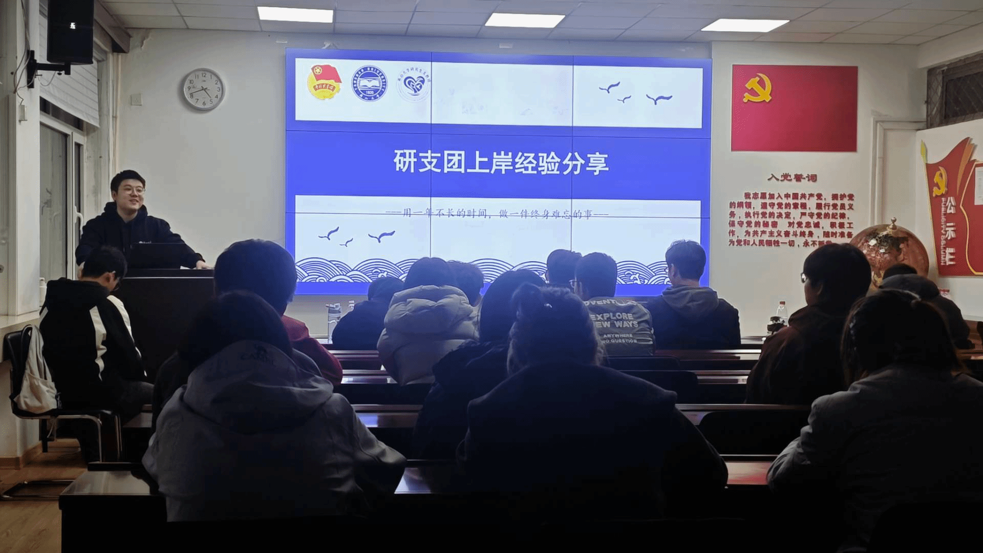 特别设置的研支团分享环节成为本次交流会的亮点。张鹏飞学长详细介绍了研支团的选拔要求、服务内容以及支教经历对个人成长的深远影响,为有志于参与基层服务和公益事业的同学指明了努力方向。