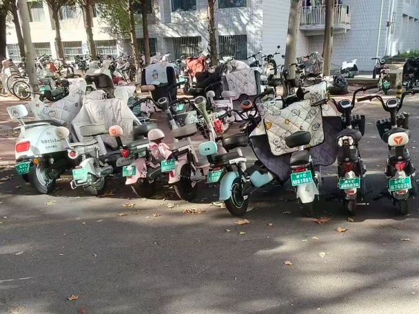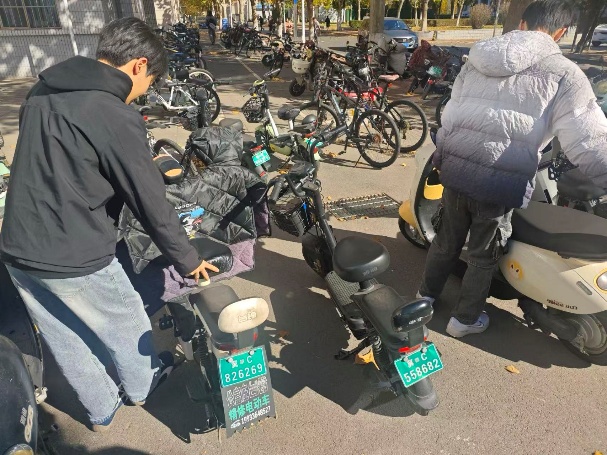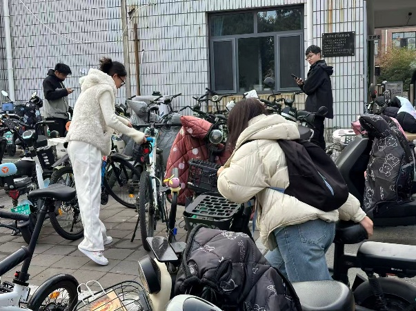 东区六舍、八舍门口停车区作为校园内人流量大的停放点,日常车辆往来频繁,常年存在车辆歪斜错位、占用通道及少量垃圾堆积问题。同学们迅速分工、默契配合。在六舍门口,志愿者们轻挪自行车,或是两人调整电动车,还耐心修正车头朝向,确保车辆规范入位;东八舍区域,大家注重细节,或调整间距、或修正压线、或清理杂物,让停车区环境“加分” 。经过努力,杂乱停车区焕然一新:车辆分区停放、排列成行,车头统一朝向。摆放整齐的车辆成为了一道校园温馨文明风景线。