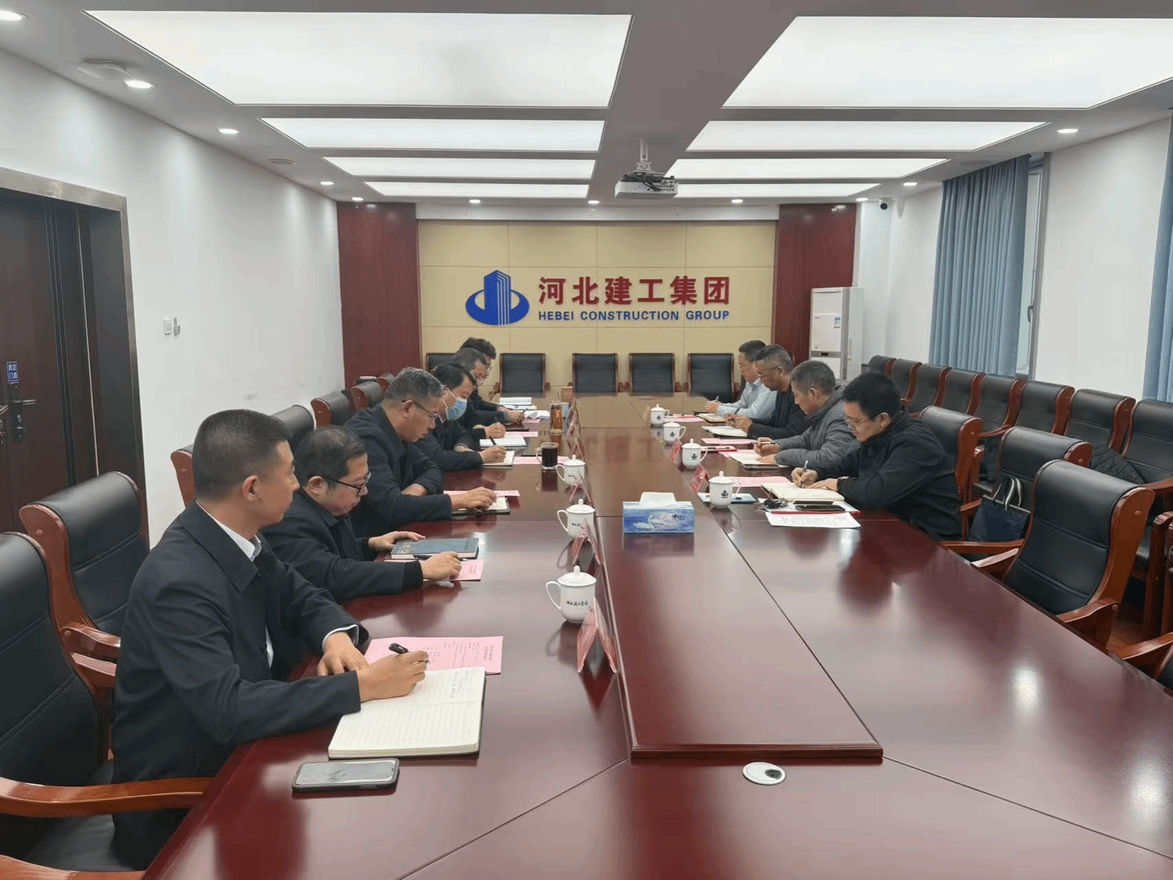在河北建筑设计研究院有限责任公司,郝圣旺一行与集团党委副书记王跃恩等领导共同探讨行业前景,为亚博体育